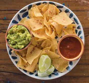 2- MEXICO: Corn chips med guacamole and salsa dip